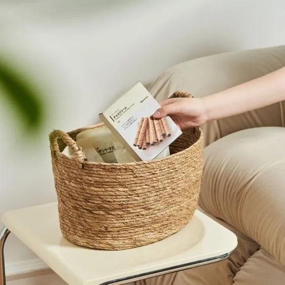 ตะกร้าเก็บของสานจากฟางธรรมชาติ ตะกร้าเก็บของทำมือ ขายส่ง เป็นมิตรกับสิ่งแวดล้อม ผลิตในเวียดนาม