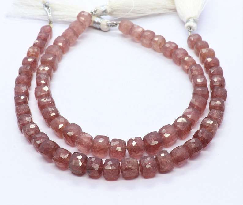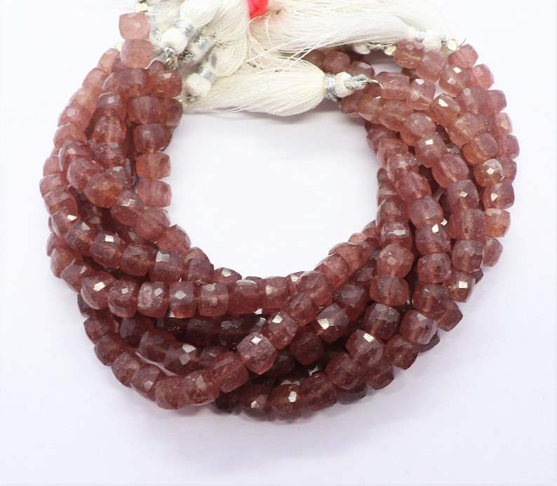 ลูกปัดทรงลูกเต๋าเหลี่ยมเพชรพลอยสตรอว์เบอร์รีธรรมชาติ