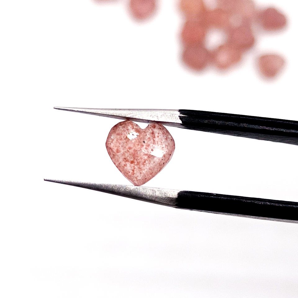 ลูกปัดแกะสลักรูปหัวใจเหลี่ยมเพชรพลอยควอตซ์สตรอเบอร์รี่