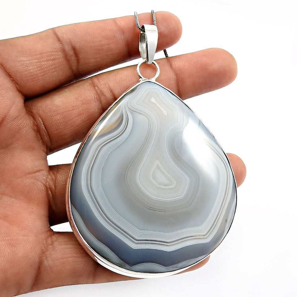 925พลอยโอนิกซ์ลายธรรมชาติจี้รูปหยดน้ำเงินสเตอร์ลิงจี้สวยงามออกแบบตามคำสั่งซื้อเครื่องประดับอินเดีย