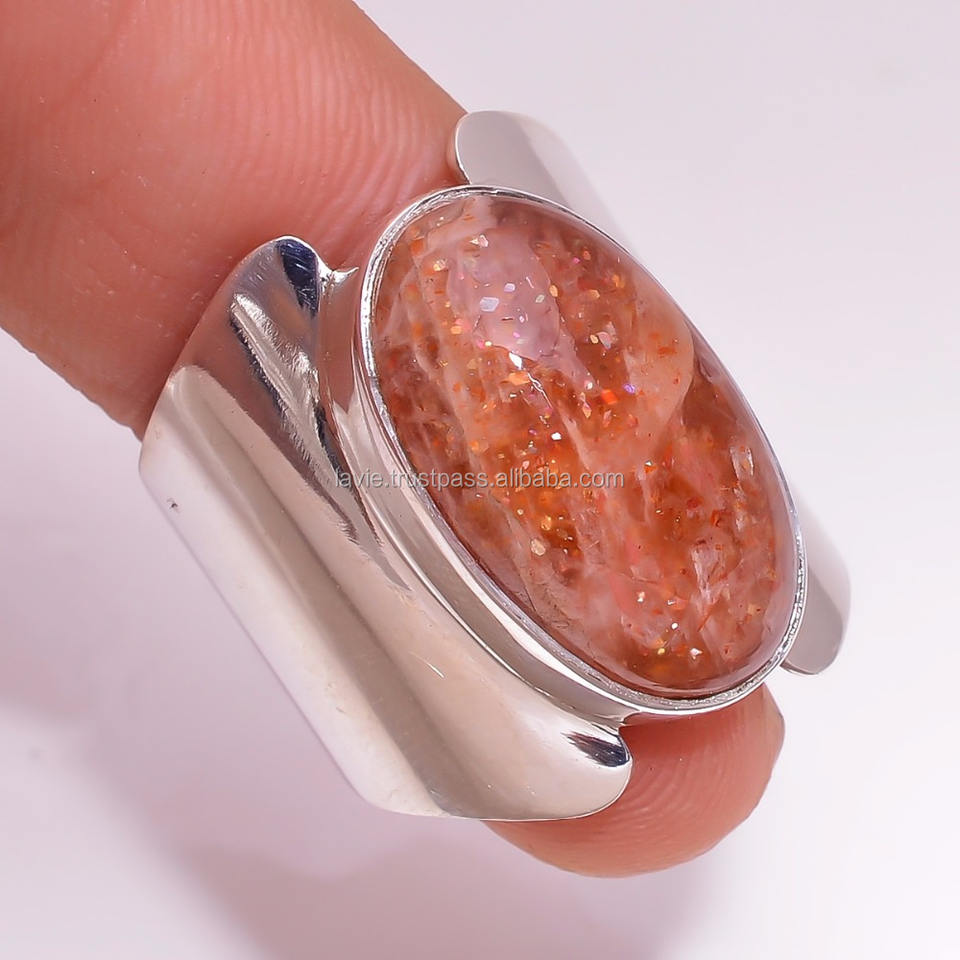 แหวนซันสโตนธรรมชาติ เครื่องประดับแฮนด์เมด เครื่องประดับเงินแท้ 925 ผู้ผลิตและขายส่ง