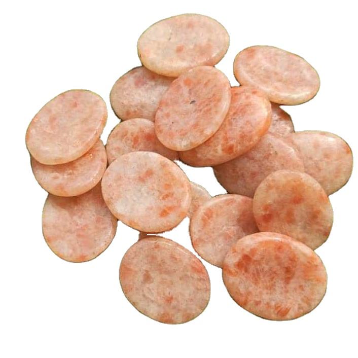 หินธรรมชาติ Sunstone Worry Stone/Thumb Stone/Palm Stone สำหรับหินเรกิการรักษาด้วยคริสตัลและการทำสมาธิจำนวนมากจากหินโมราที่สง่างาม