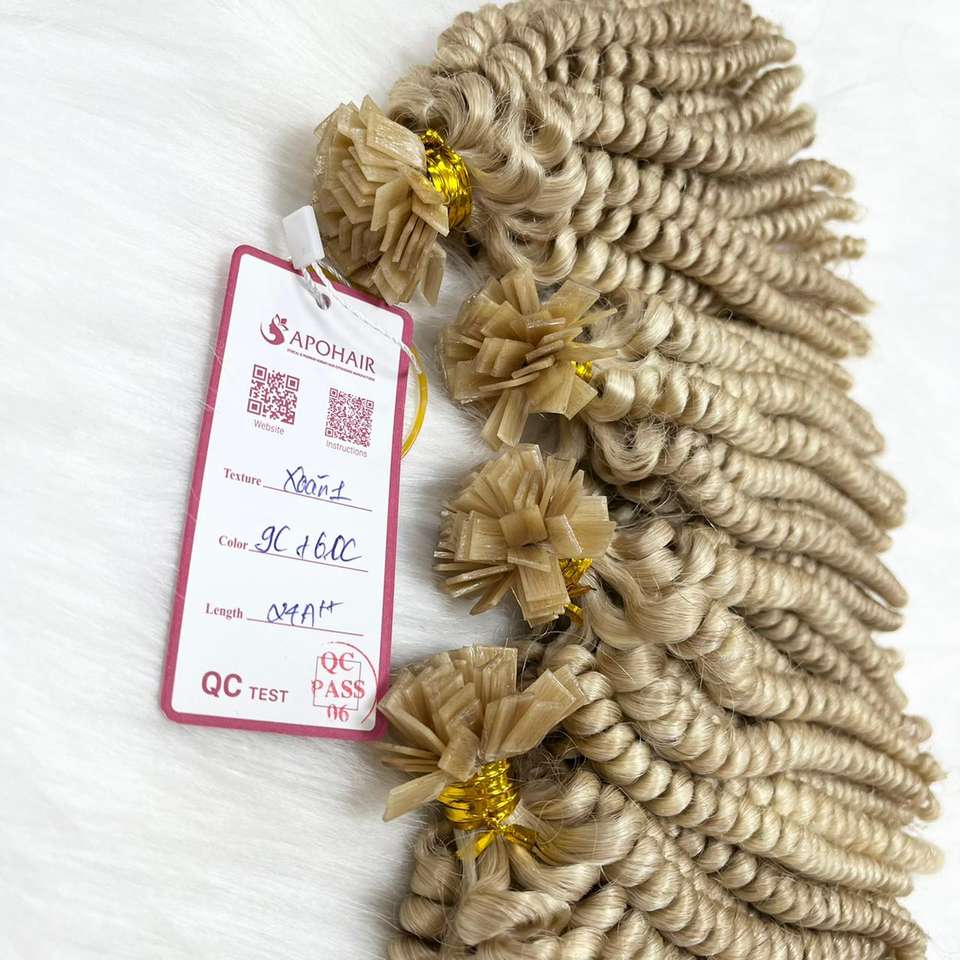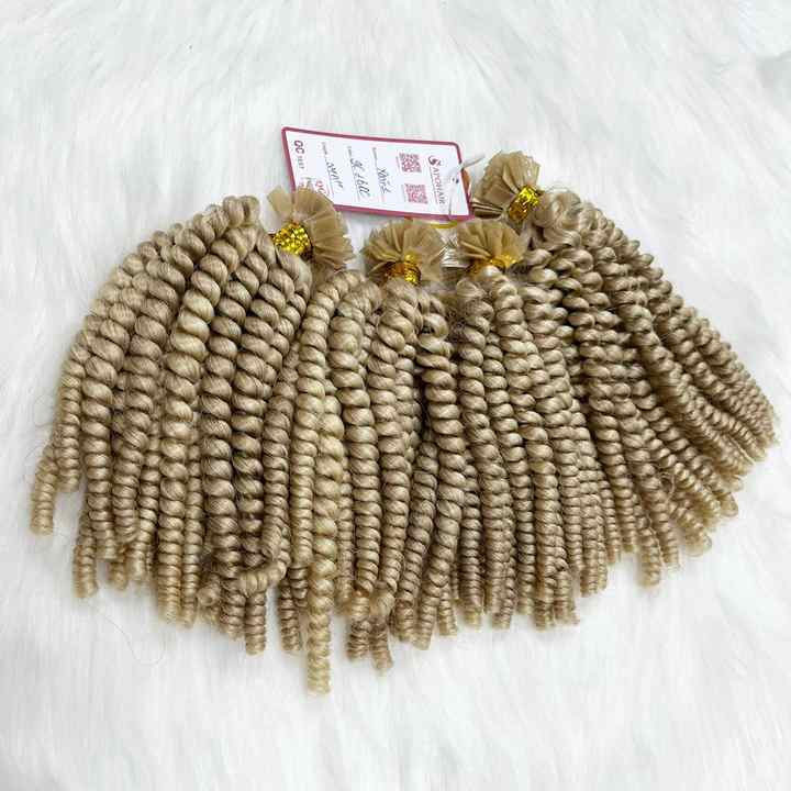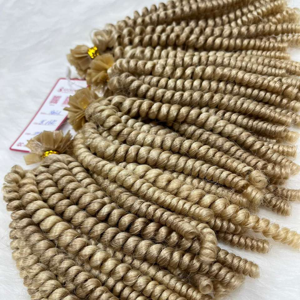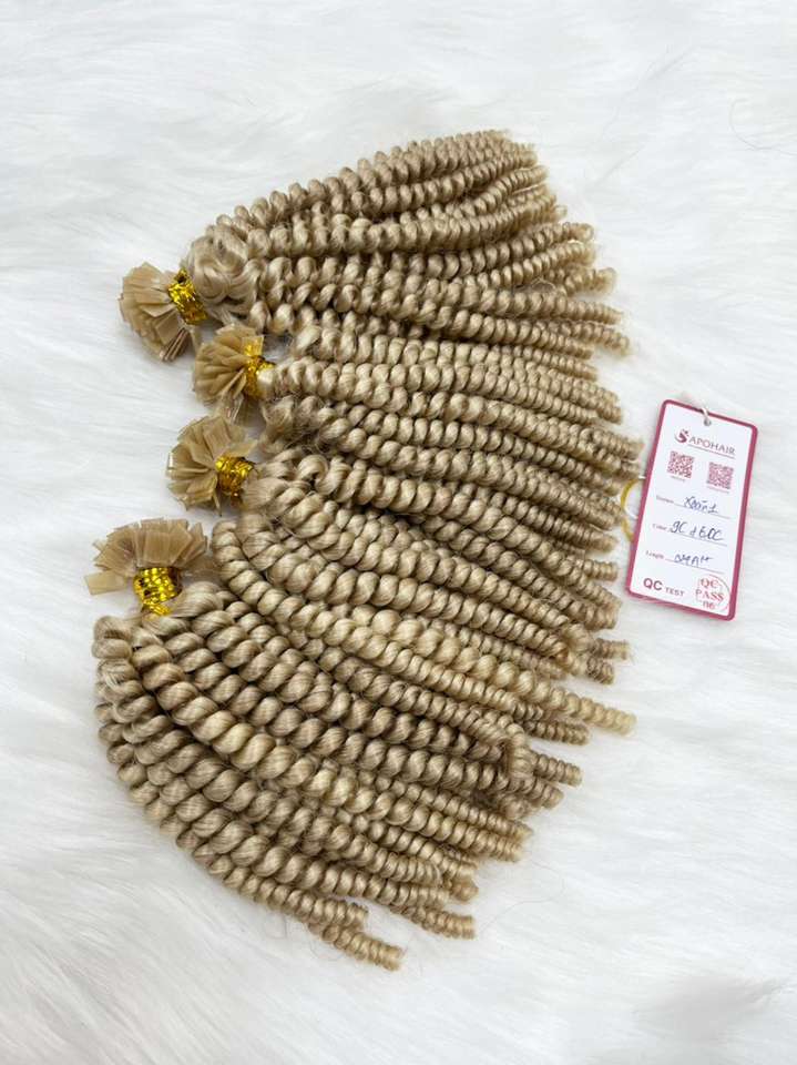 Natural Super Double Drawn Mixed Piano Light Blonde Remy Hair Extensions Bleached Keratin Flat Tip Hair Loose Curly Flat Tip