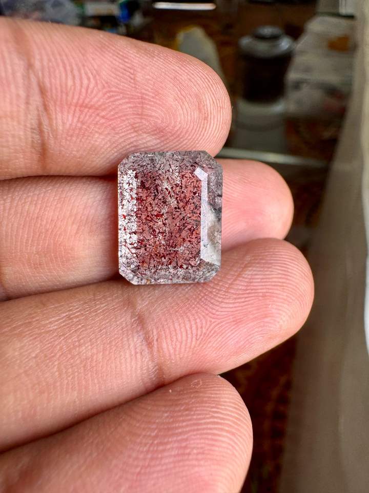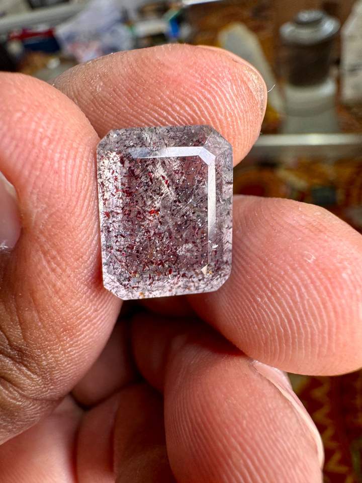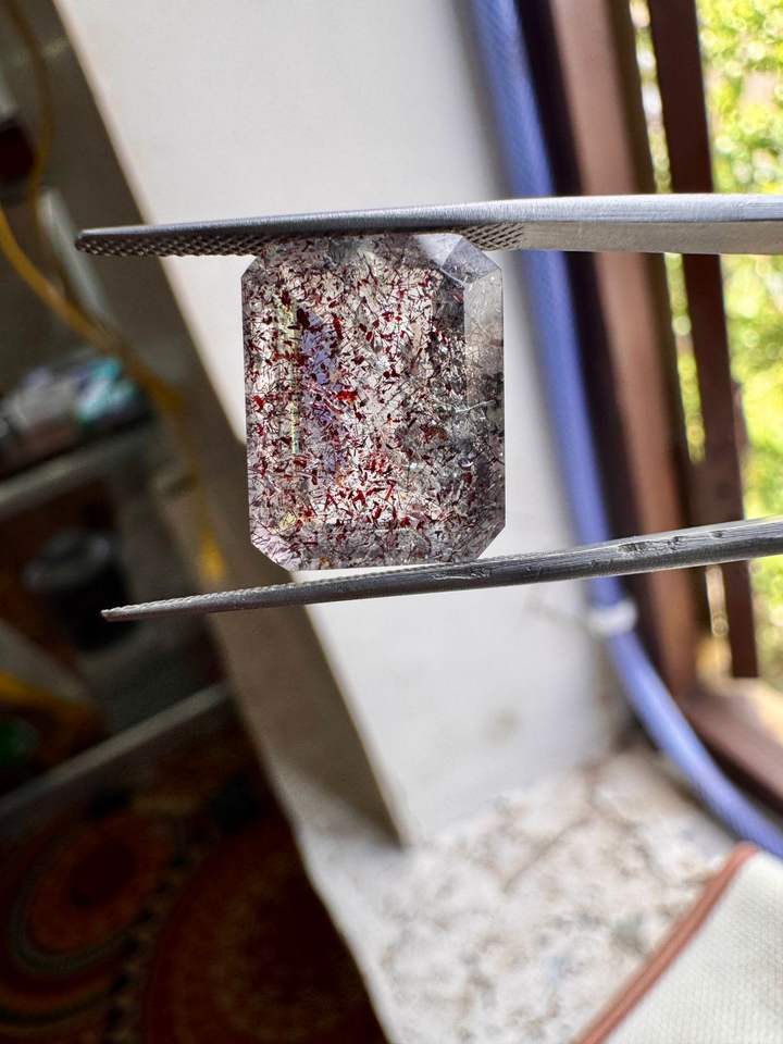 Natural Super Seven Emerald Cut gemstone, Bloodshot Stone stone For Jewelry Making, Melody Super Seven size: 15.4x12x7.8 mm