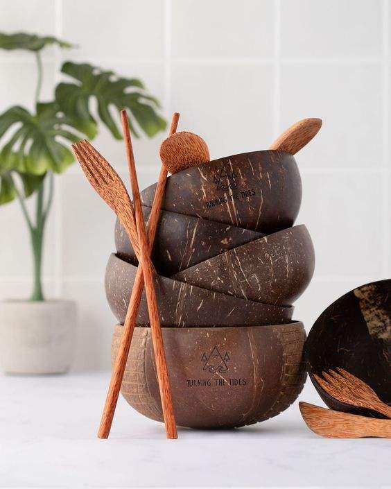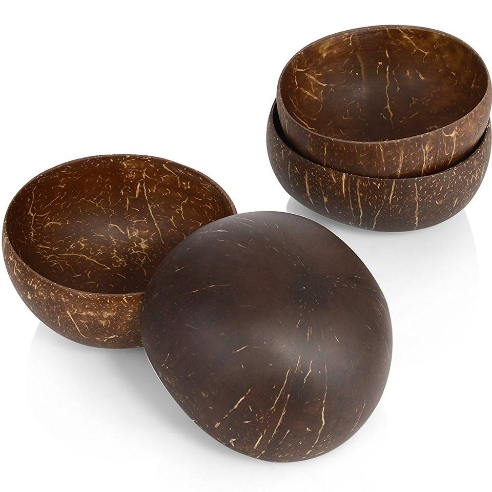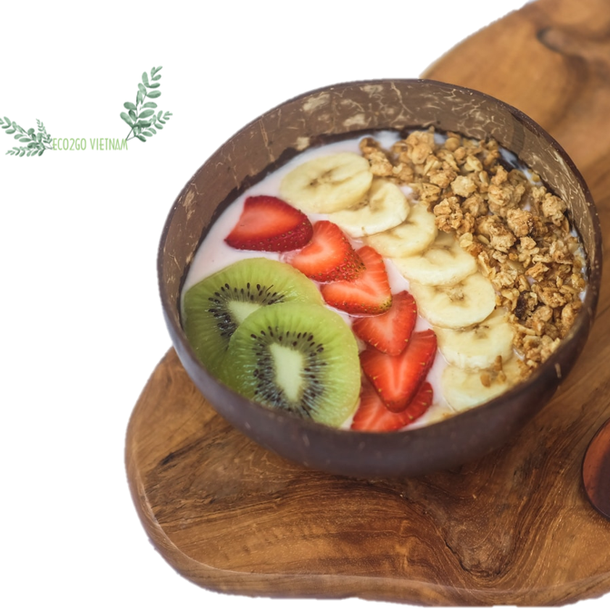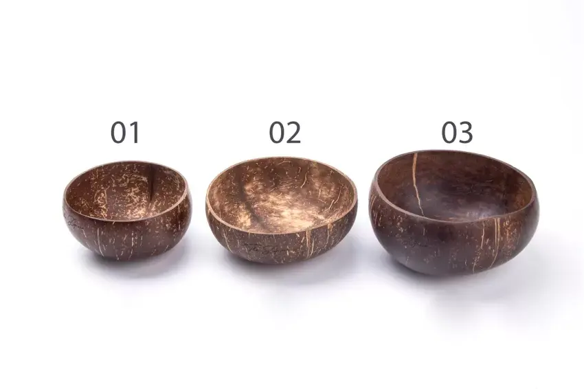ชามกะลามะพร้าวเป็นมิตรกับสิ่งแวดล้อมอย่างยั่งยืนตามธรรมชาติเวียดนามขนาดเล็ก / ชุดชามและช้อนมะพร้าวคุณภาพสูงและโลโก้เลเซอร์ฟรี