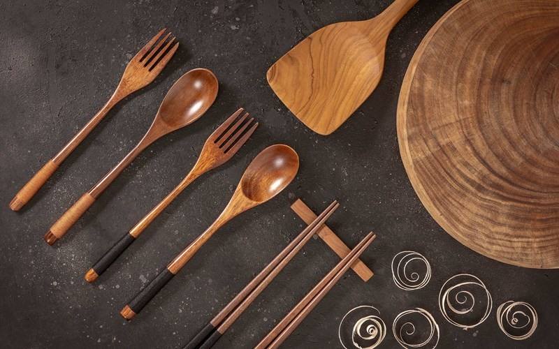 ชุดอุปกรณ์รับประทานอาหารไม้ธรรมชาติที่ยั่งยืน ผลิตโดยผู้ผลิตในเวียดนาม ขายส่ง