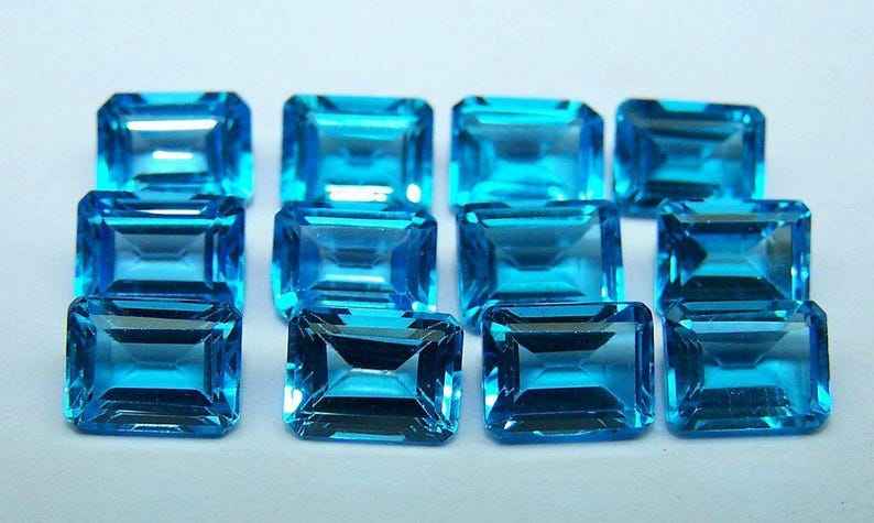 บลูโทแพซสวิสธรรมชาติทรงแปดเหลี่ยมเจียระไนแบบมีการปรับขนาด พร้อมใบรับรอง ไม่ผ่านการปรับแต่ง พร้อมสำหรับการฝังในเครื่องประดับ