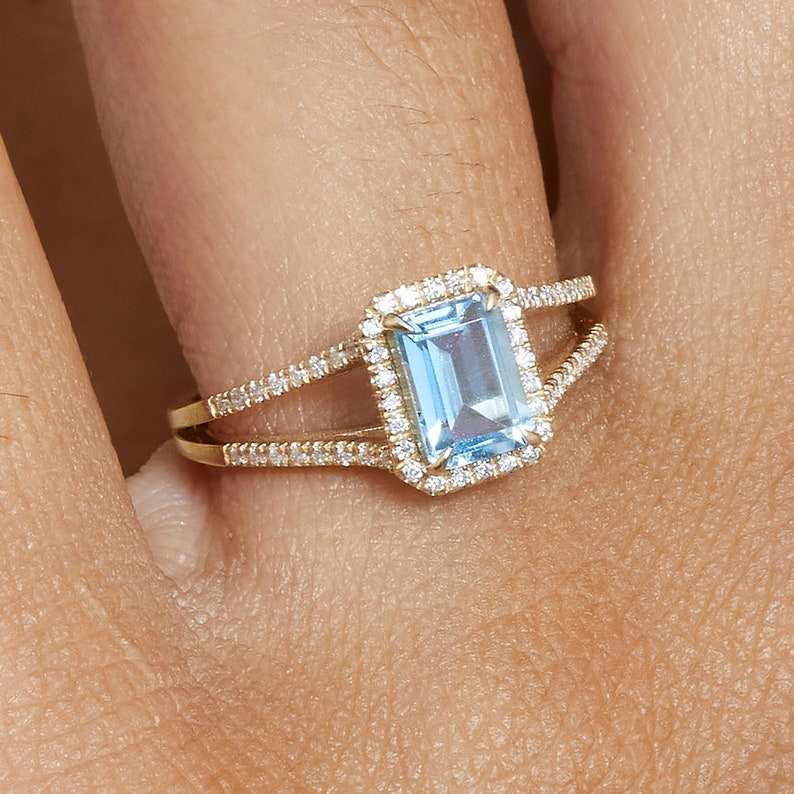 แหวนบุษราคัมสีฟ้าสวิสธรรมชาติ14K แหวนทองสีเหลืองคลาสสิกแหวนซ้อนบุษราคัมธรรมชาติเครื่องประดับทอง14K ออกแบบตามต้องการ