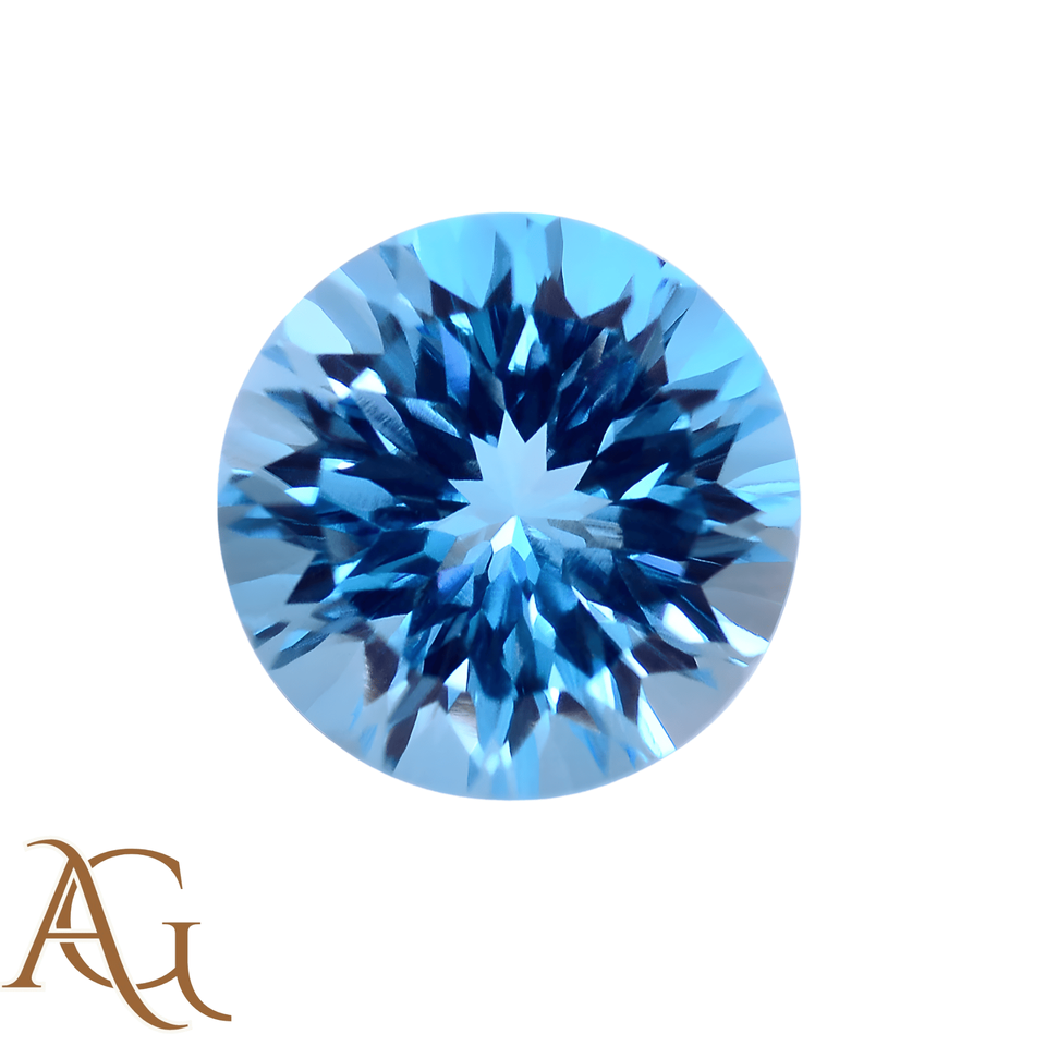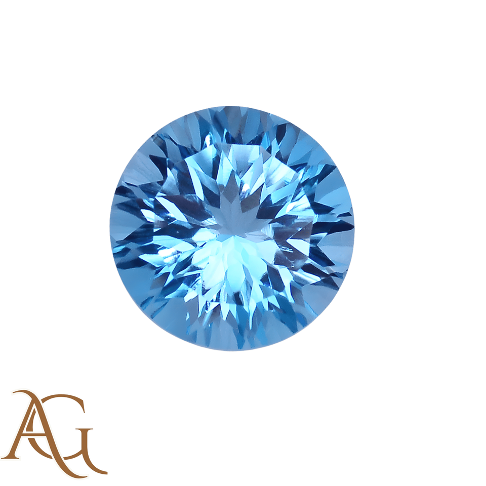 บลูโทแพซสวิสธรรมชาติทรงกลม แกะสลักด้วยเลเซอร์ งานแกะสลักแบบอินทากลิโอ ผู้ผลิตอัญมณีแบบหลวม ขายส่งสำหรับทำเครื่องประดับ