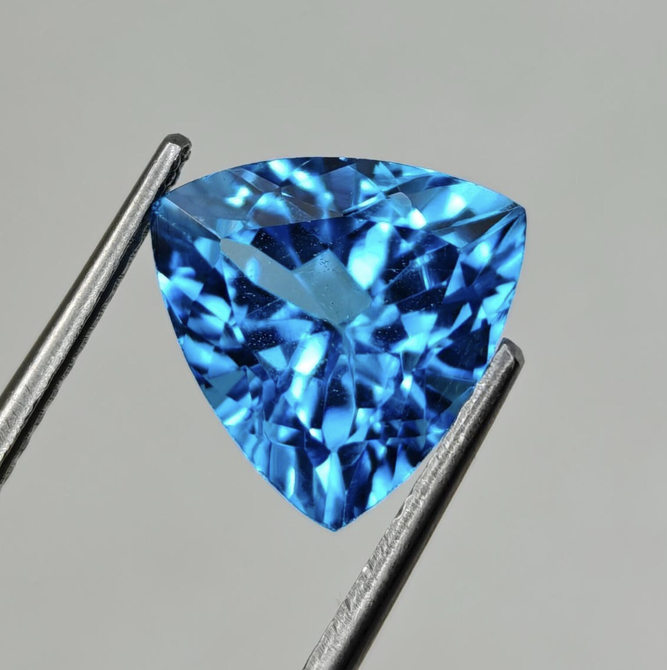 พลอยสีฟ้าโทแพซล้านล้านล้านจากสวิสธรรมชาติอัญมณีสีฟ้าทรงสามเหลี่ยม
