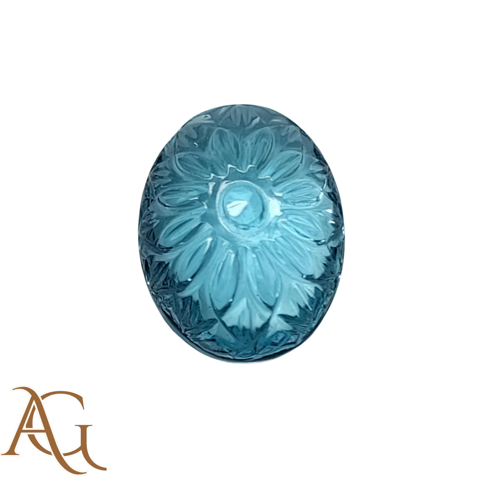 พลอยบลูโทแพซสวิสธรรมชาติแกะสลักแบบอินแทกลิโอ ขายส่งจากผู้ผลิตสำหรับทำเครื่องประดับ ปรับขนาดให้เข้ากับมาตรฐาน