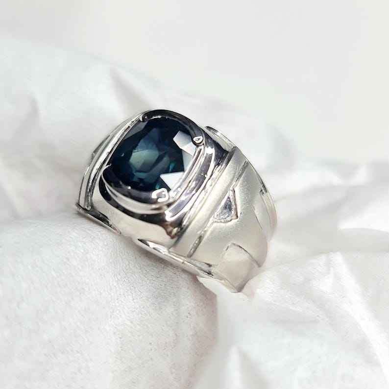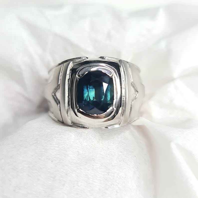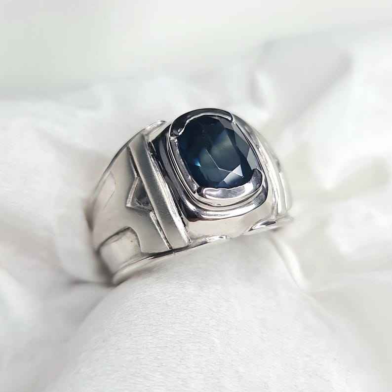 แหวนเงินแท้ทำมือประดับไพลินแทนซาเนียธรรมชาติ เงินสเตอร์ลิง 925 อัญมณีสีน้ำเงิน เครื่องประดับหรูหรา ของขวัญสำหรับผู้หญิง