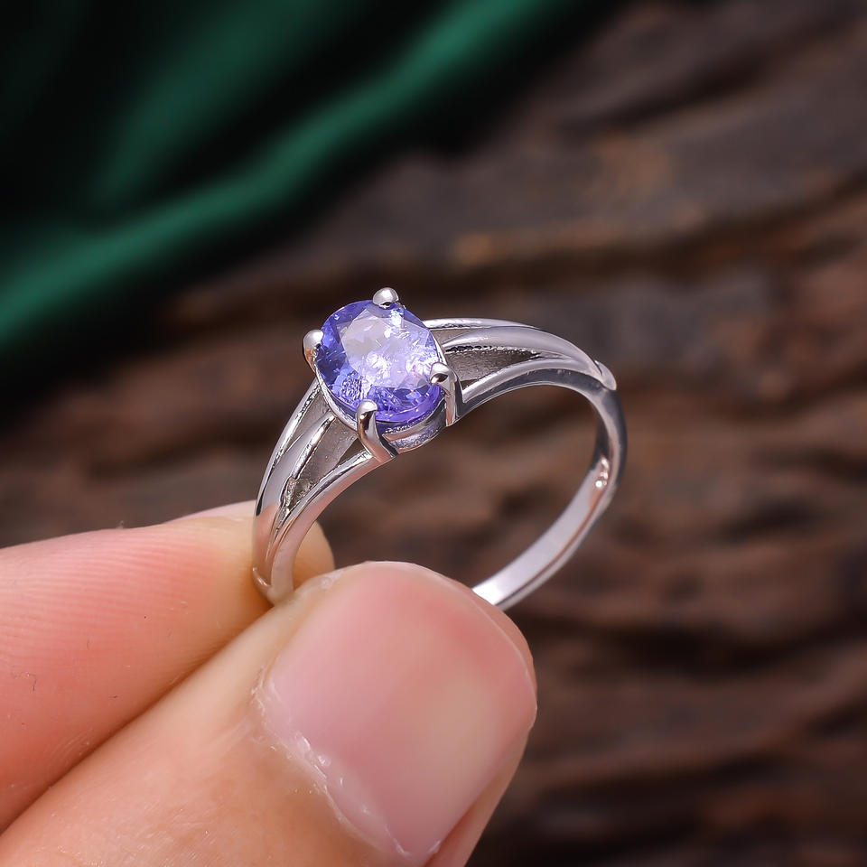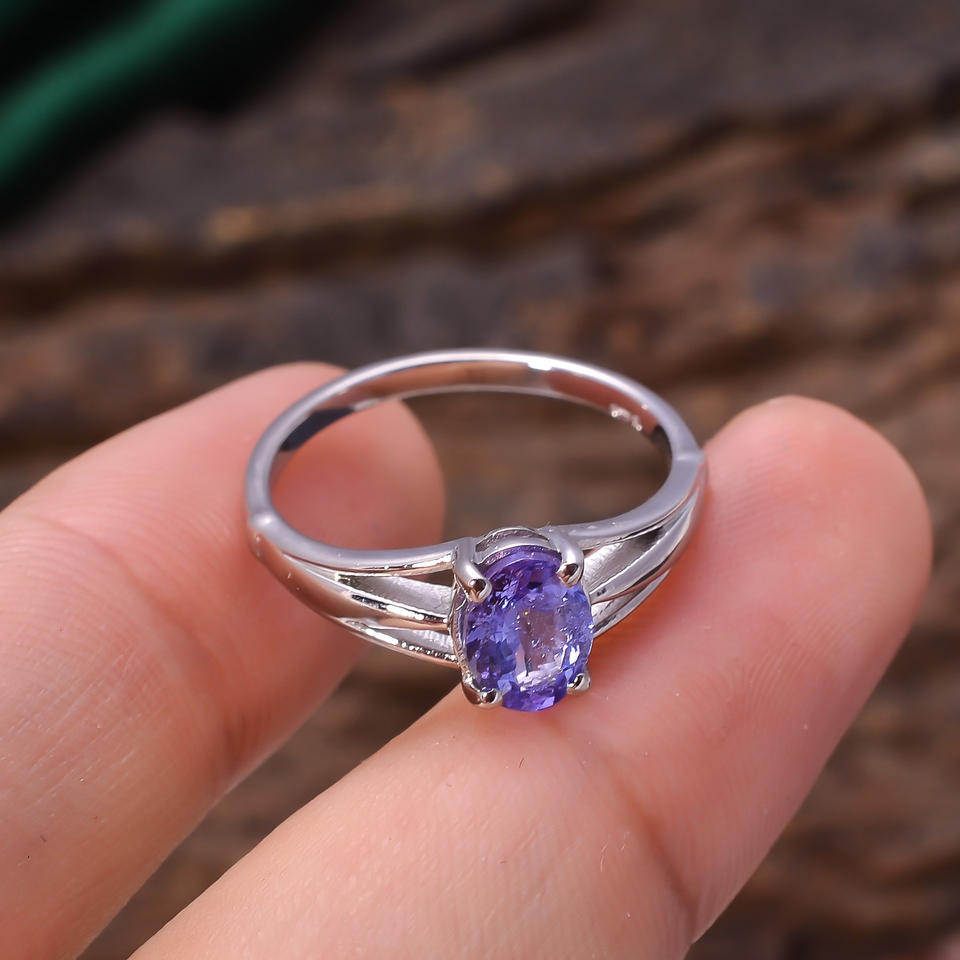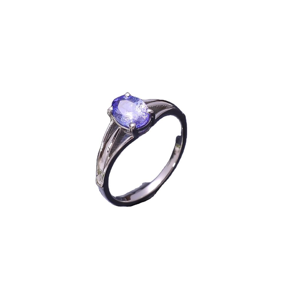 อัญมณีแทนซาไนต์ธรรมชาติ92.5เงินสเตอร์ลิงชุบทองคำขาวปรับขนาดได้2.3กรัมรูปไข่แท้ของผู้ชาย