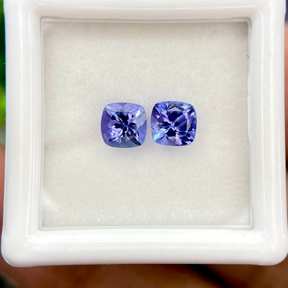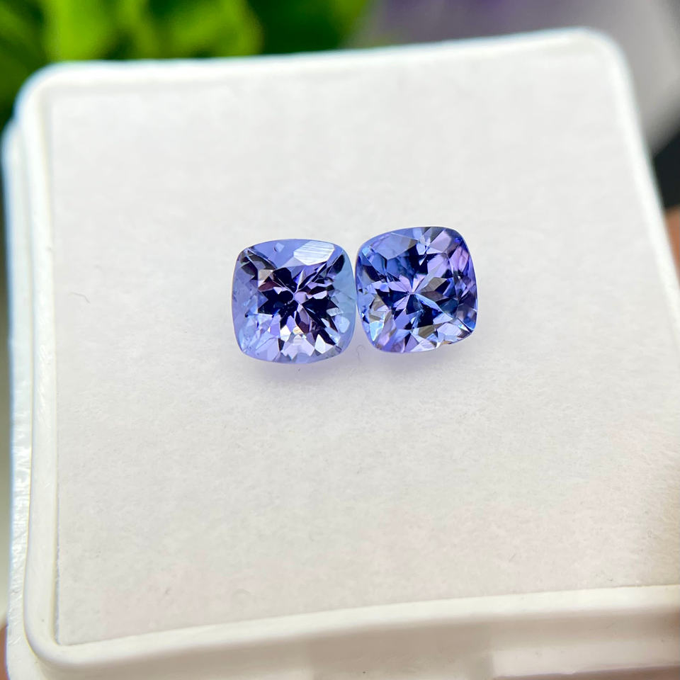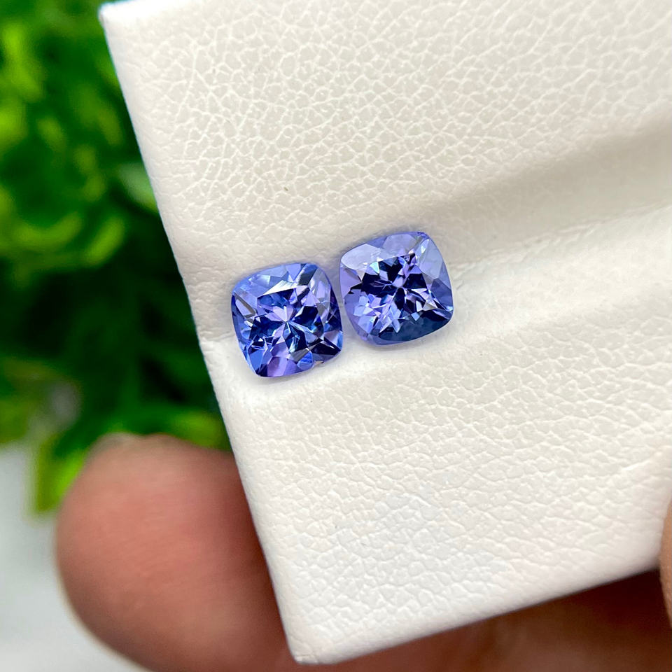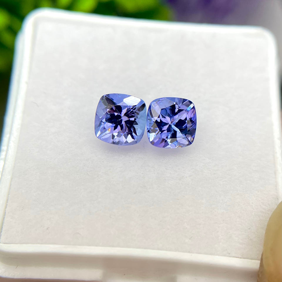 พลอย tanzanite ธรรมชาติรูปทรงหมอนอิงคู่ Loupe สะอาด zoisite สำหรับทำเครื่องประดับขายส่งร้านอัญมณี