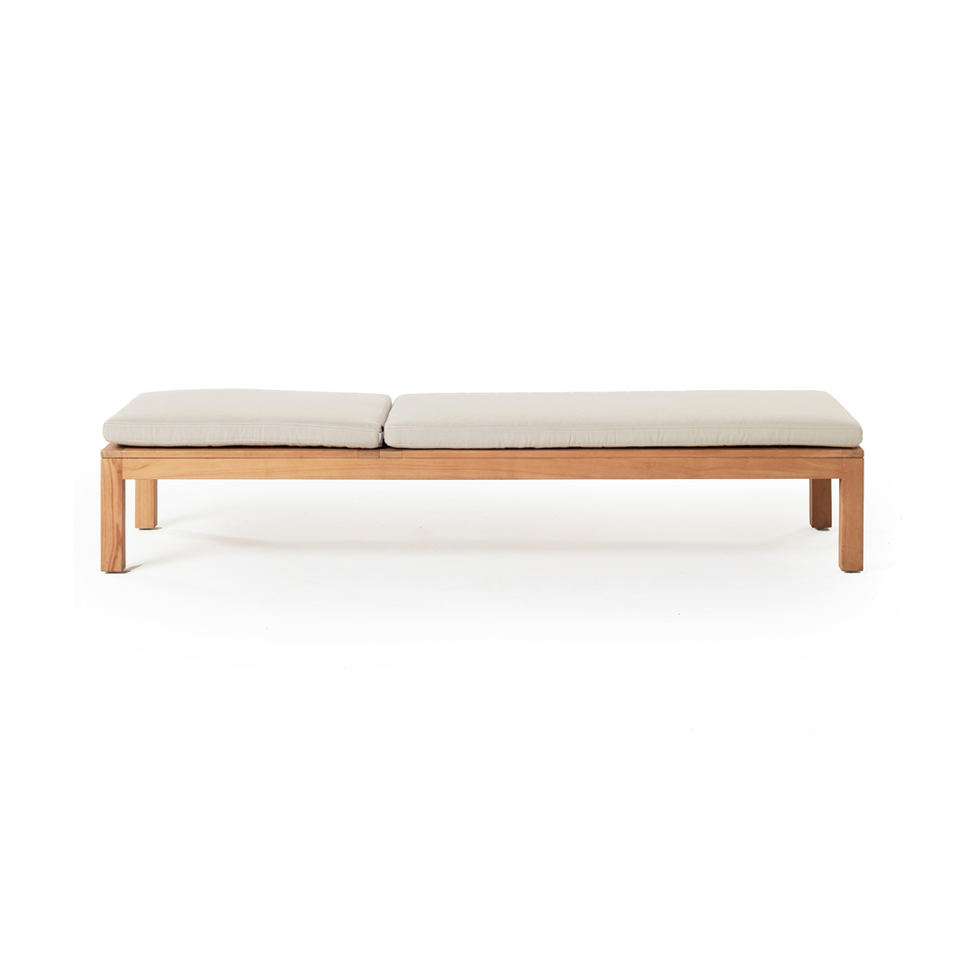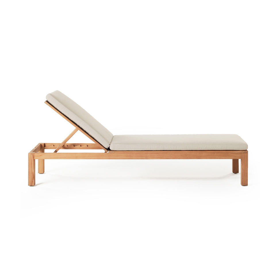 เก้าอี้อาบแดดไม้สักธรรมชาติสีธรรมชาติกลางแจ้งดีไซน์ทันสมัยกันน้ำได้ผ้าปลอดภัยในบรรจุภัณฑ์โรงแรมวิลล่าภายนอกคลังสินค้า