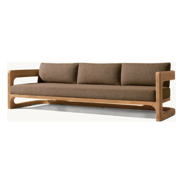 โซฟาเลานจ์ไม้สักธรรมชาติงานฝีมือทันสมัยพร้อมหมอนอิงแสนสบาย