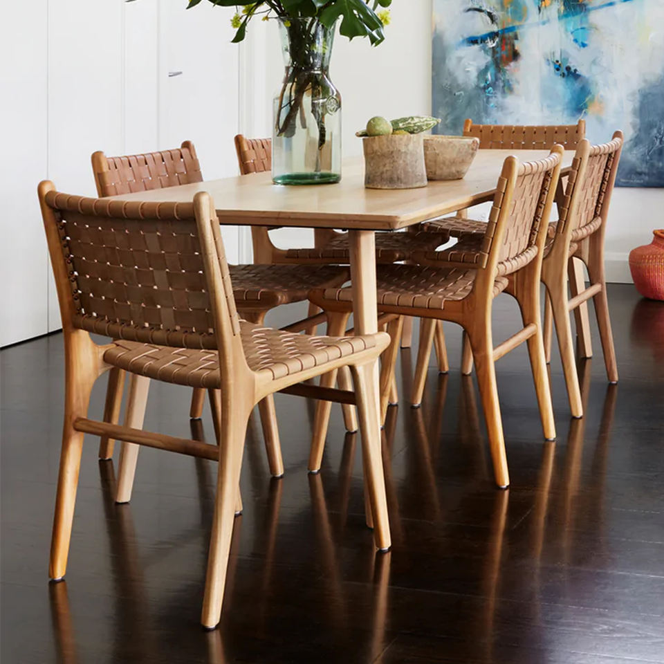 Solid Teak Wood + Leather Strapping