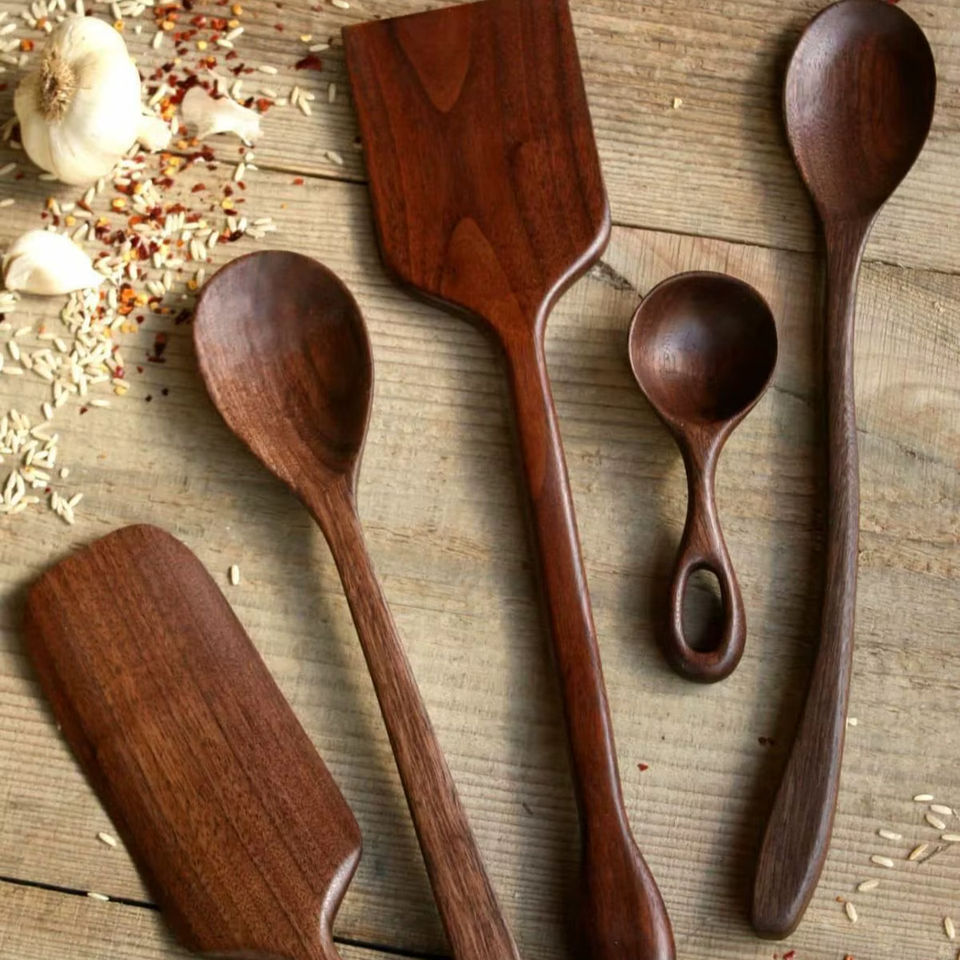 ชุดอุปกรณ์ครัวไม้สักธรรมชาติ พร้อมที่วางช้อน-ช้อนทำอาหารจับถนัดมือ และที่วางอุปกรณ์ทำครัว คอลเลคชั่นงานแฮนด์เมด