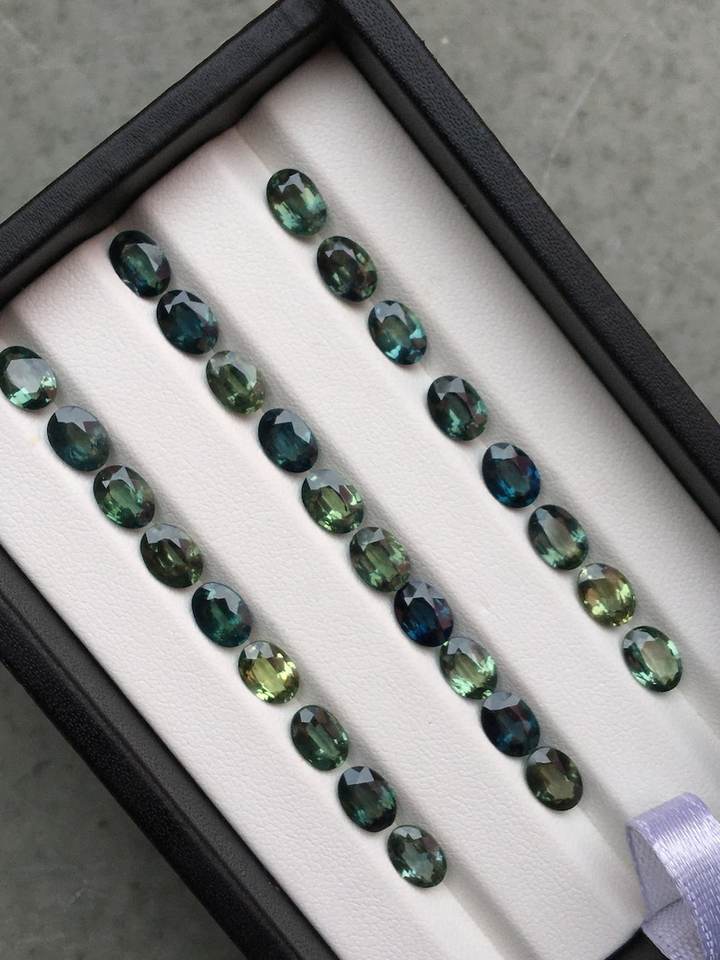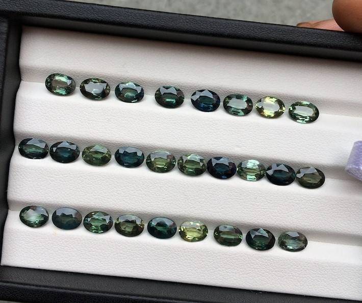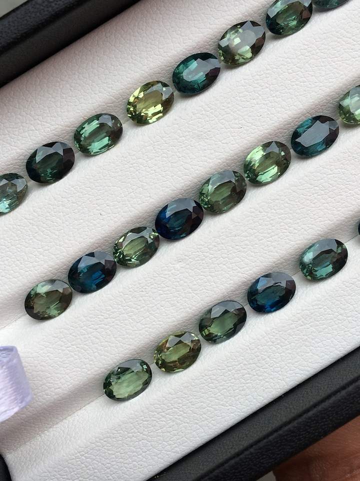 พลอยไพลินสีเขียวอมฟ้าธรรมชาติ แสดงเฉดสีที่ได้แรงบันดาลใจจากมหาสมุทร