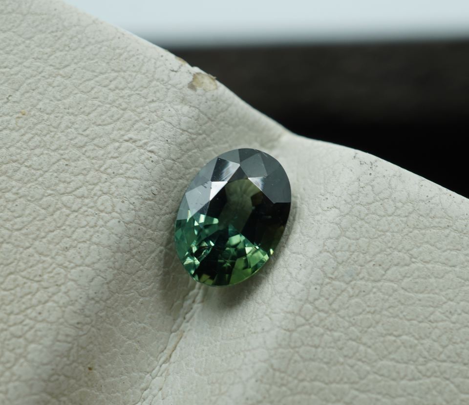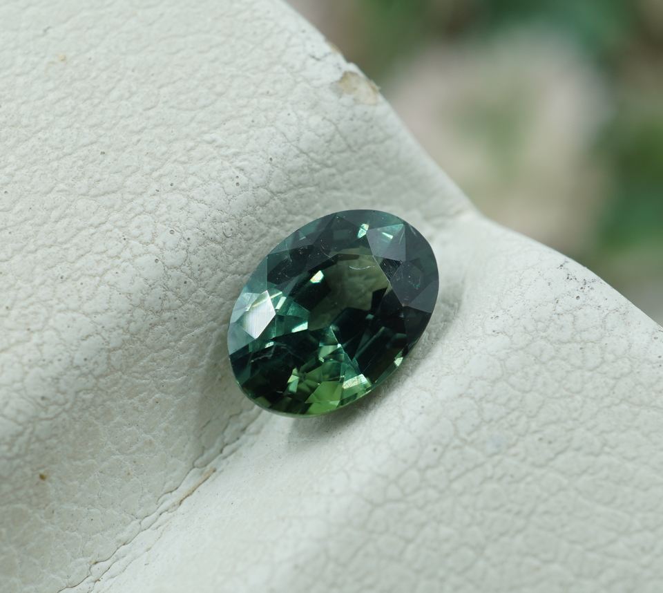 พลอยไพลินสีเขียวอมฟ้าธรรมชาติทรงรี