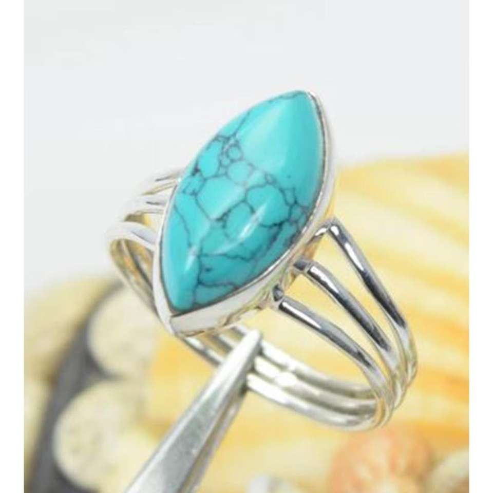แหวนพลอยเทอร์ควอยซ์ธรรมชาติสไตล์ทิเบตสำหรับเด็กผู้หญิงเครื่องประดับเงินสเตอร์ลิง925ตามสั่งขายส่งเครื่องประดับแหวนเงินจำนวนมาก