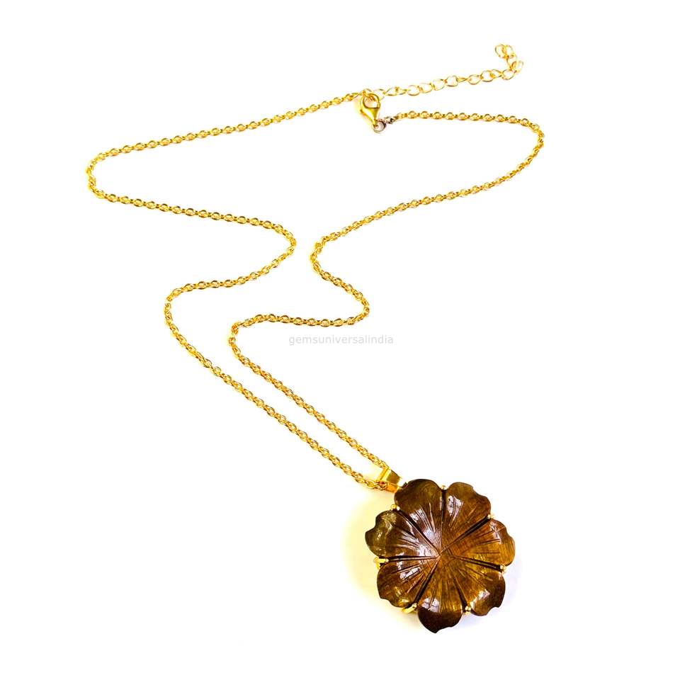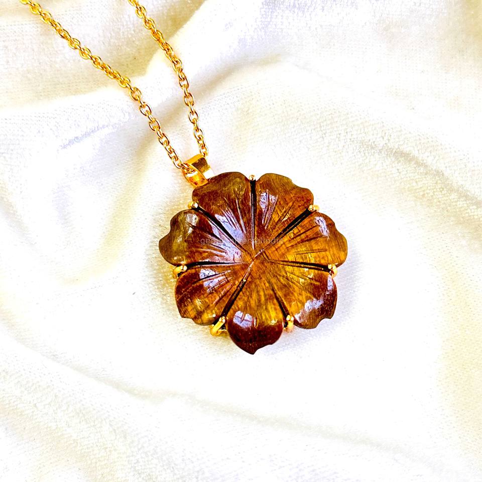 ชื่ออัญมณี:จี้ห้อยคอรูปดอกไม้หินตาเสือธรรมชาติ