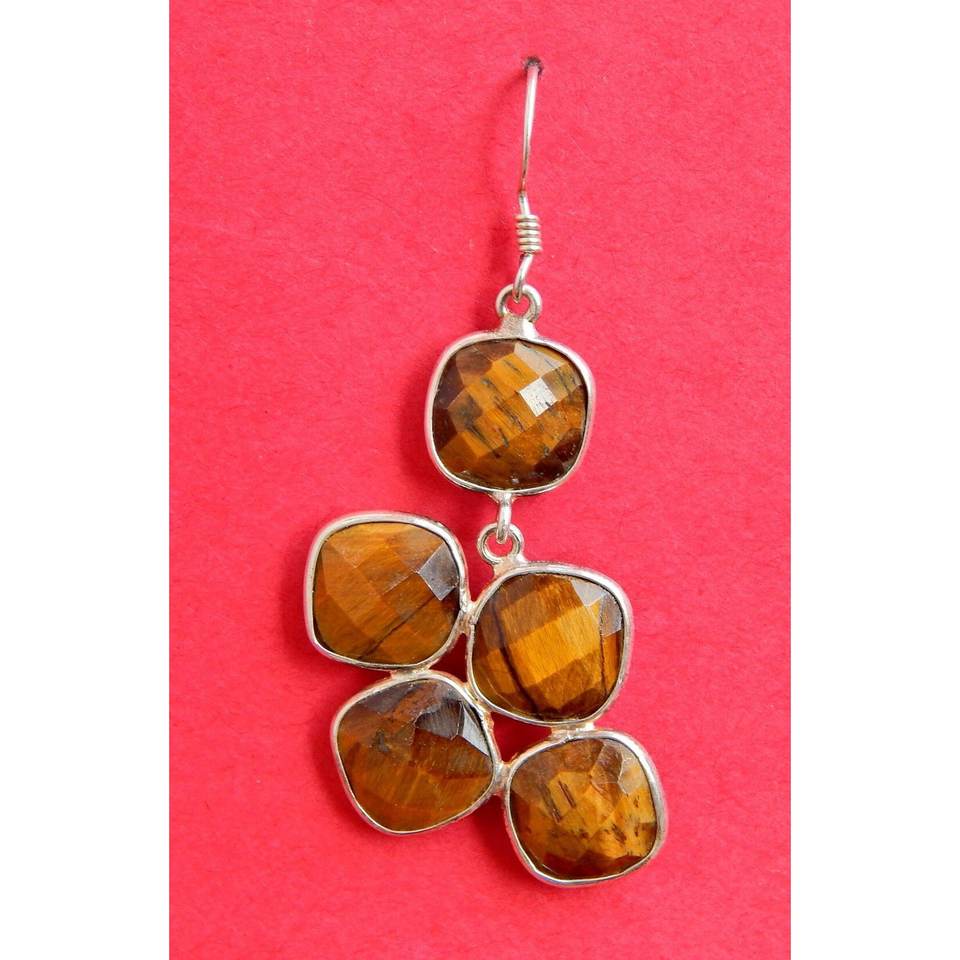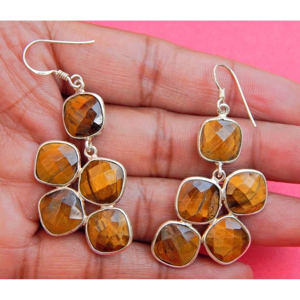 ต่างหูพลอยตาเสือตามธรรมชาติทำด้วยมือ925เครื่องประดับเงินสเตอร์ลิงของขวัญที่ทันสมัยสำหรับสาวๆผู้หญิง