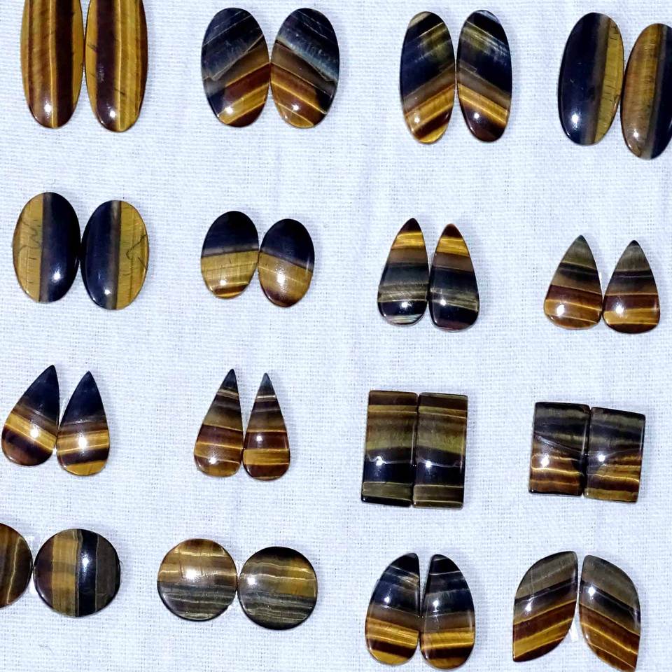 คู่ตาเสือธรรมชาติอัญมณีหลวมต่างหูใช้คู่ล่าสุดอัญมณีหลวมทำอัญมณีคู่ธรรมชาติ