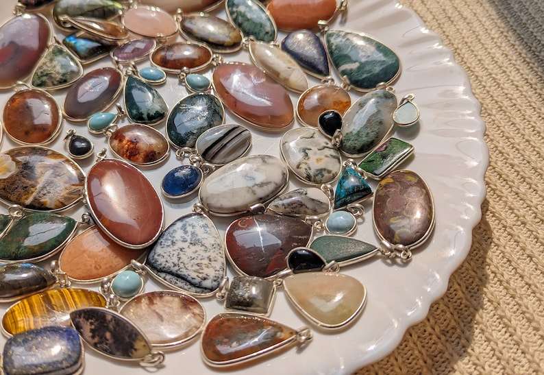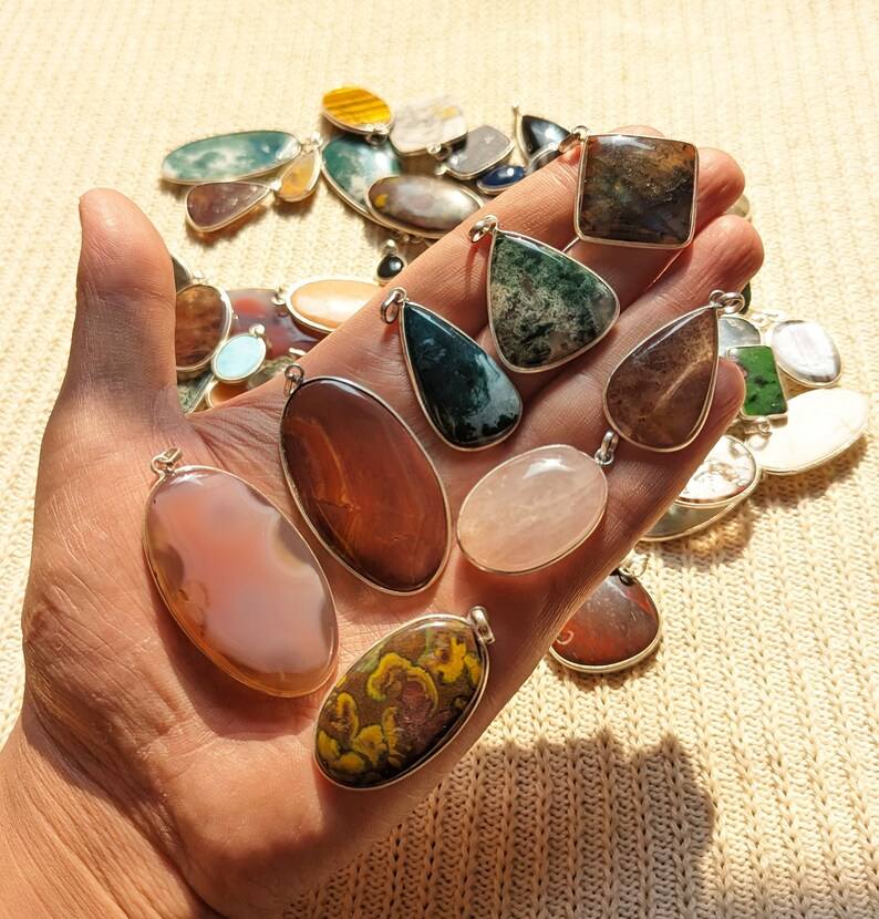 Natural Top Multi Gemstone Oval Cabochon High Polished Loose Handmade Bezel Pendant Solid 925 Sterling Silver Fashion Jewelry