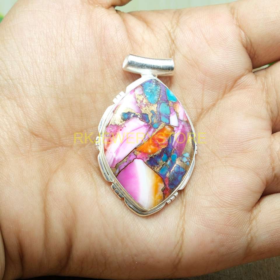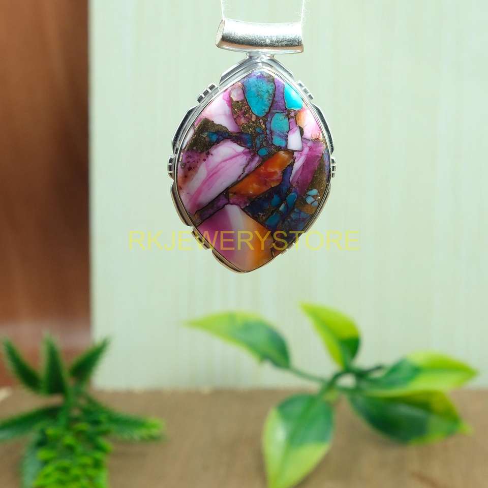 ชื่อหรือคำ:จี้หินโมเสกหลากสี ทำมือ เงินแท้ 925