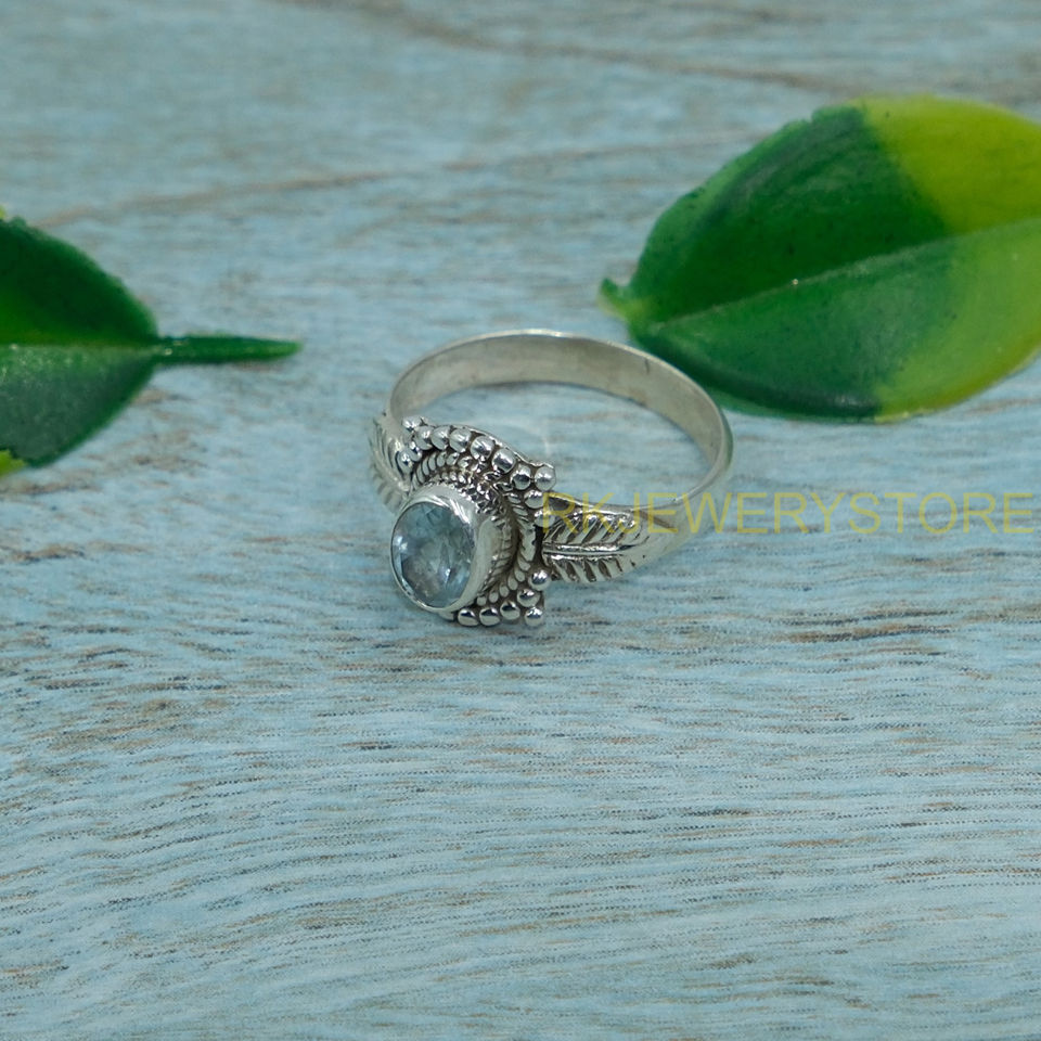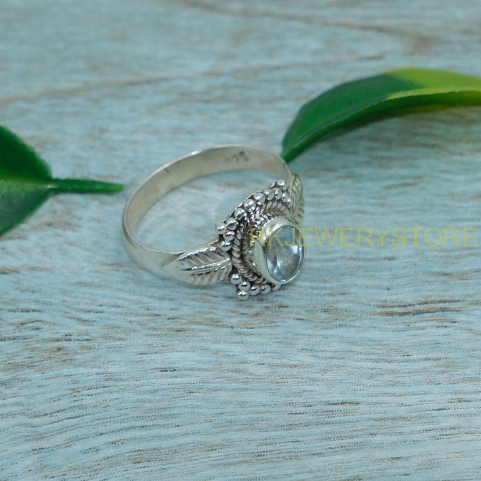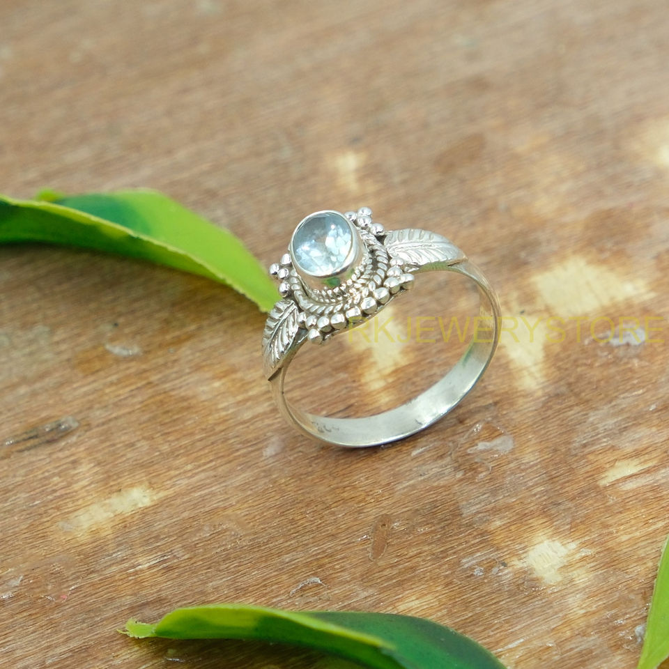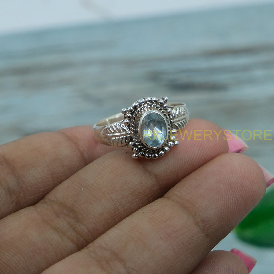 แหวนบลูโทแพซคุณภาพสูงธรรมชาติ แหวนเงินแท้ 925 สำหรับผู้หญิง แหวนพลอยสีฟ้า แหวนสเตทเมนท์ ของขวัญเครื่องประดับ