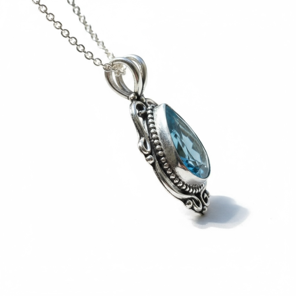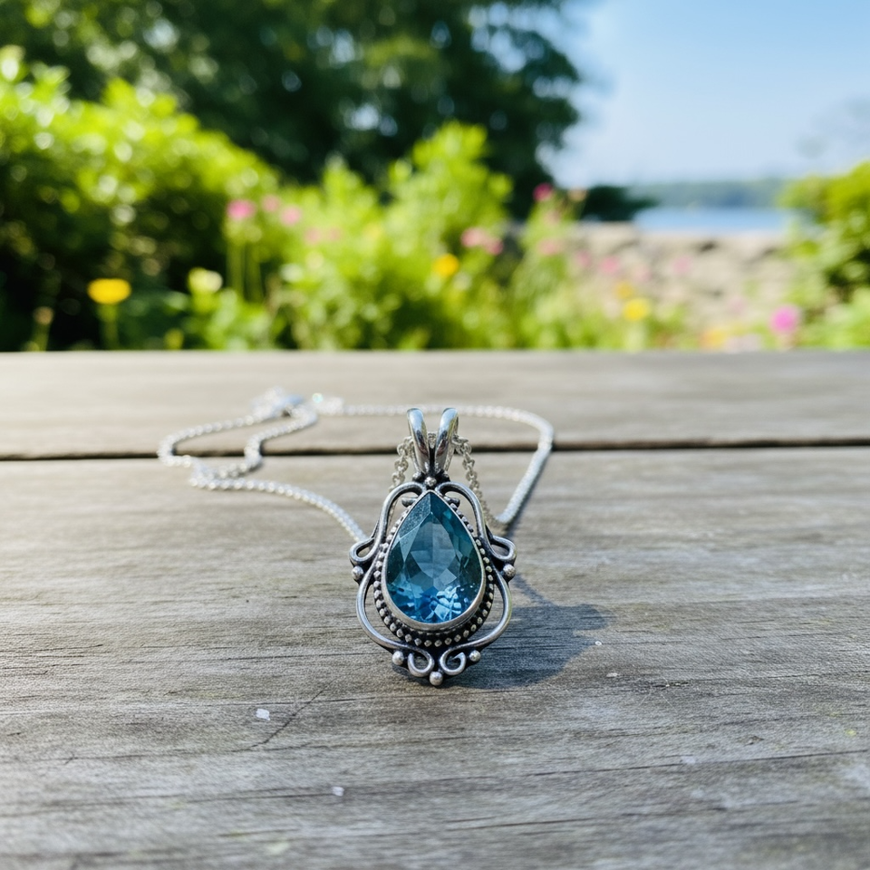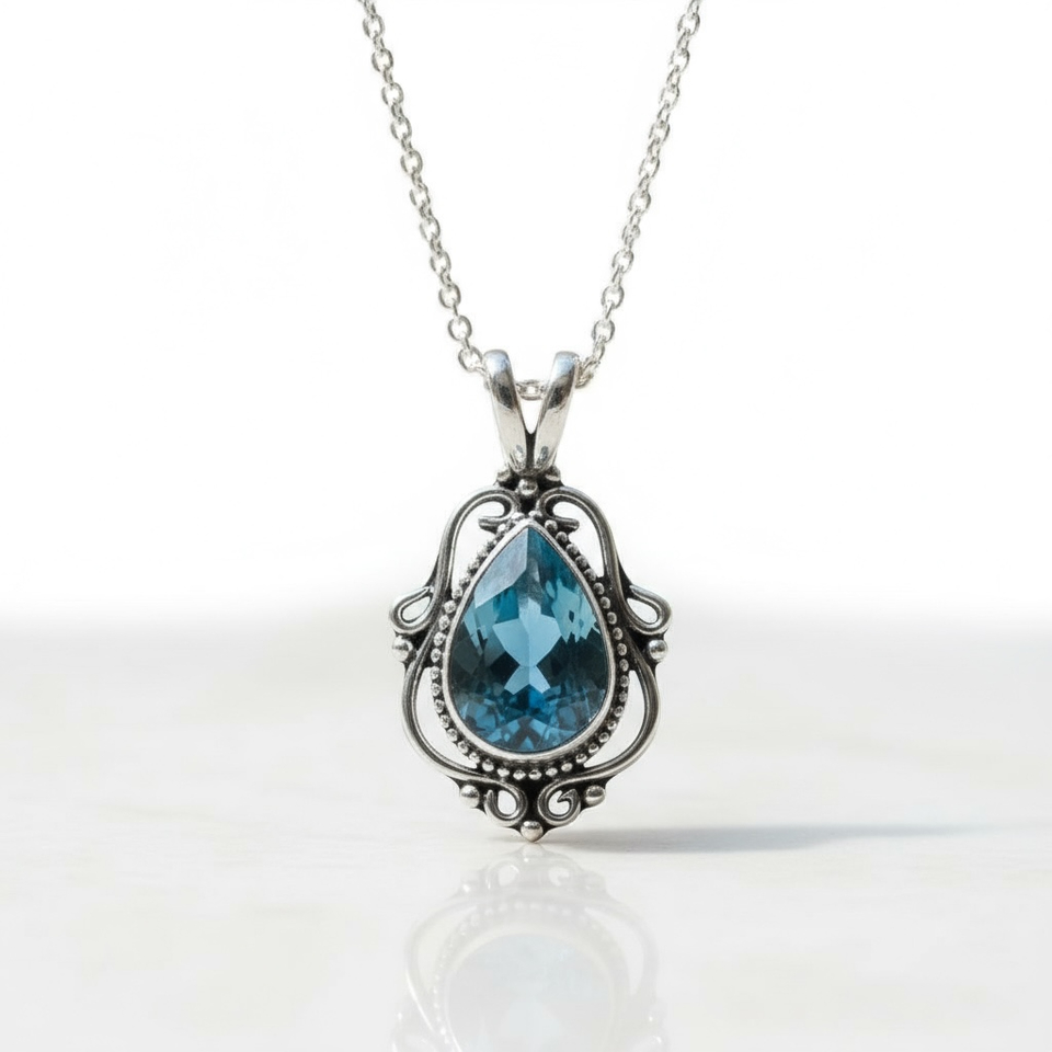 จี้เงินแท้สีบุษราคัมทำด้วยมือพลอยทรงหยดน้ำสไตล์โบฮีเมียนสไตล์วินเทจเครื่องประดับวันเกิดของขวัญสำหรับเธอ