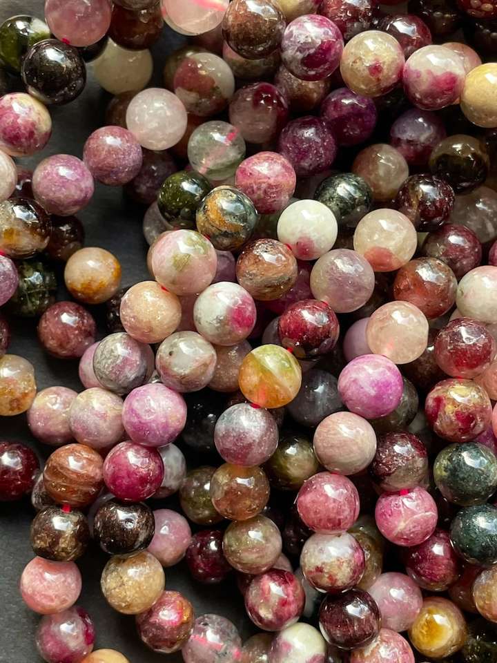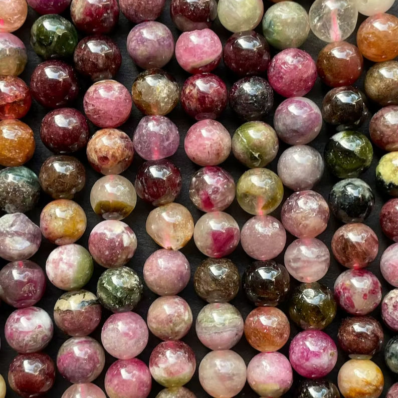 ลูกปัดหินทัวร์มาลีนธรรมชาติ รูปทรงกลมเรียบเนียน สวยงาม หลายสี น้ำตาล สำหรับทำเครื่องประดับ