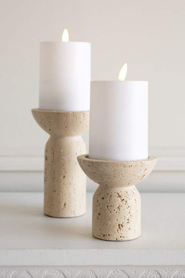 เชิงเทียนหินอ่อนธรรมชาติ ลายเส้นธรรมชาติ ดีไซน์โดดเด่น ตกแต่งหินออร์แกนิก สำหรับสร้างบรรยากาศในห้องนั่งเล่น