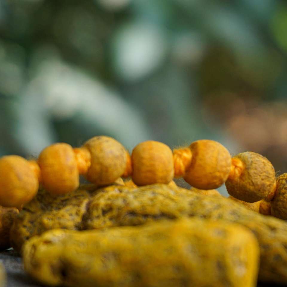 มาลาลูกปัดขมิ้นธรรมชาติ 108 เม็ด – สร้อยคอไม้สีเหลืองสำหรับสวดมนต์ ทำสมาธิ และเสริมพลังบวก | แพ็คขายส่ง