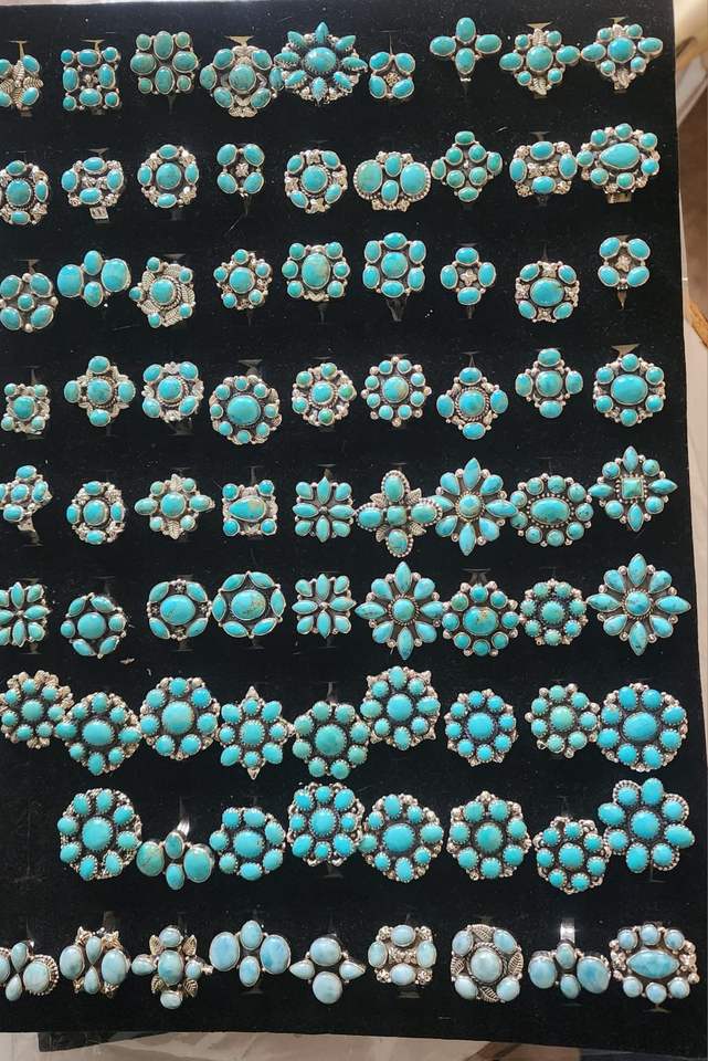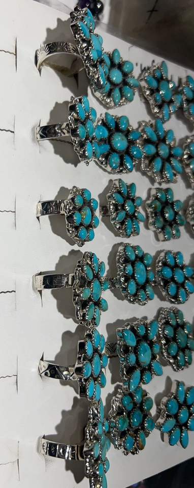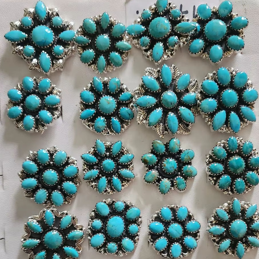 แหวนเงินแท้ 925 ประดับเทอร์ควอยซ์ธรรมชาติ ทำมือ สไตล์โบโฮ เหมาะสำหรับใส่ทุกวัน ของขวัญสำหรับเธอ แหวนดีไซน์ลายดอกไม้