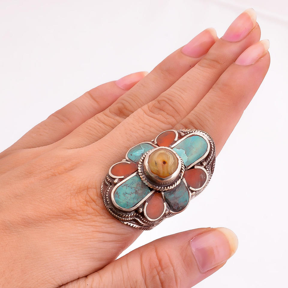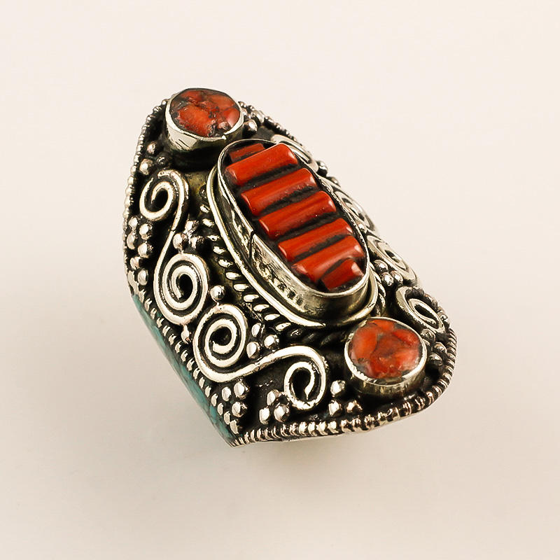 แหวนทิเบตสีเทอร์ควอยซ์ธรรมชาติเครื่องประดับทำด้วยมือผู้จำหน่ายเครื่องประดับทิเบตขายส่งจำนวนมาก