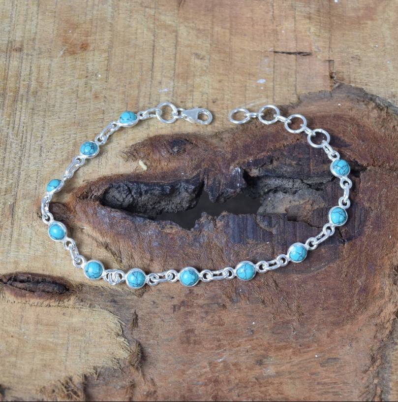 Product Name:Natural Turquoise Gemstone silver bracelet