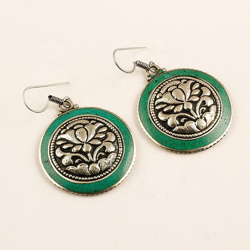 Natural Turquoise Gemstone Earring, Handmade Tibetan Jewelry, Designer Jewelry