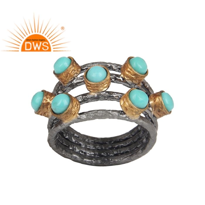 ธรรมชาติเทอร์ควอยซ์แหวนออกแบบเครื่องประดับเงินผู้ผลิตสองโทนชุบ925เครื่องประดับแหวนเงินผู้ผลิต