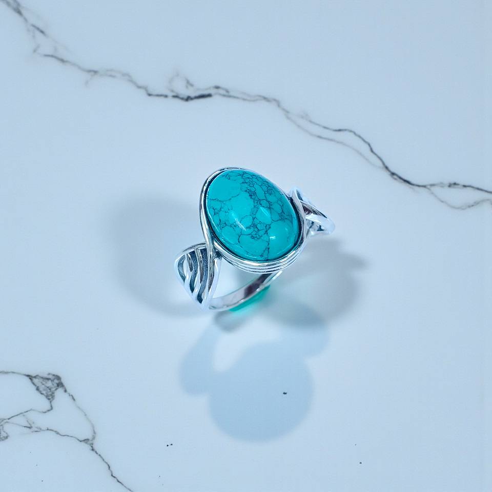 แหวนพลอยเทอร์ควอยซ์ธรรมชาติและแหวนเงินแท้ 925 ทำมือ