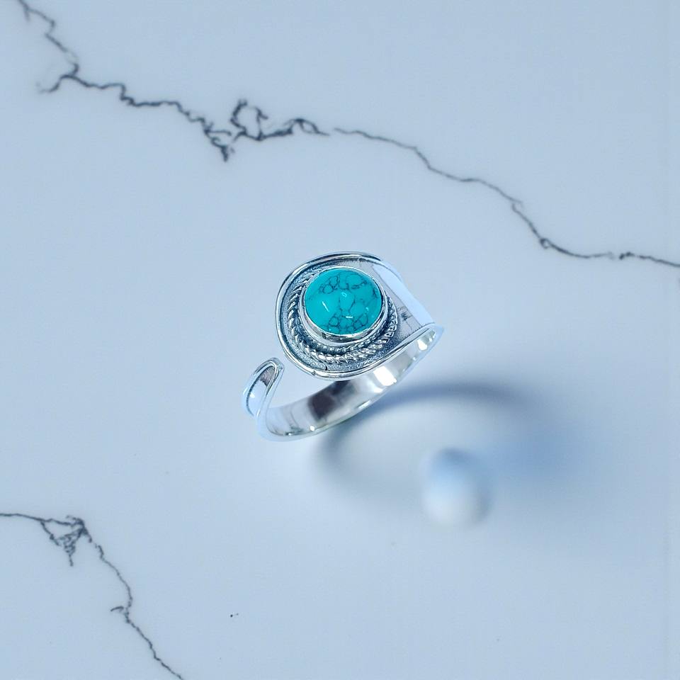 แหวนเงินประดับพลอยเทอร์ควอยซ์ธรรมชาติ ดีไซน์โดดเด่น แหวนเงินแท้ 925 ทำมือ