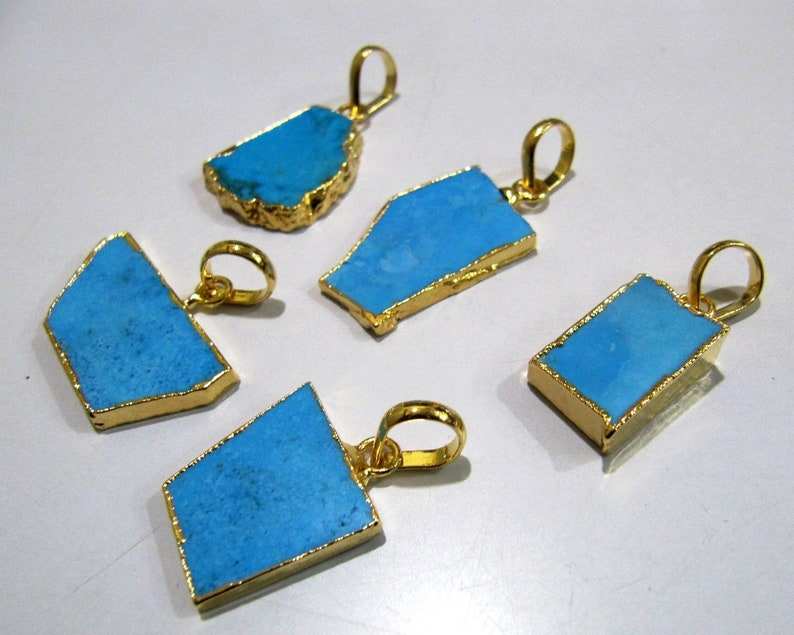 จี้ชิ้นแมกนีไซต์สีเทอร์ควอยส์ธรรมชาติจี้รูปฟรีพร้อมขอบชุบทองด้วยไฟฟ้าห่วงเดี่ยว1นิ้วโดยประมาณ