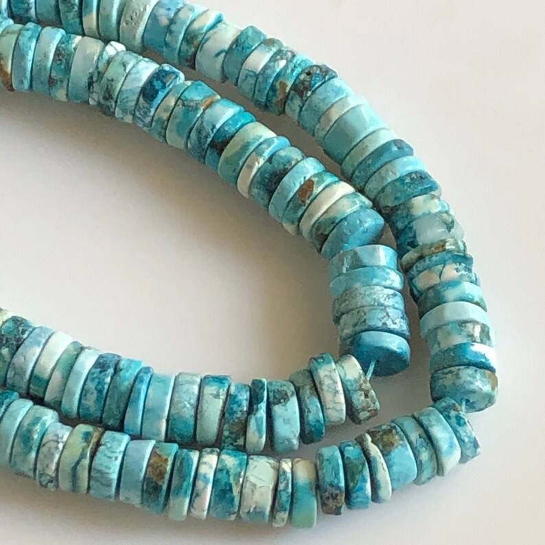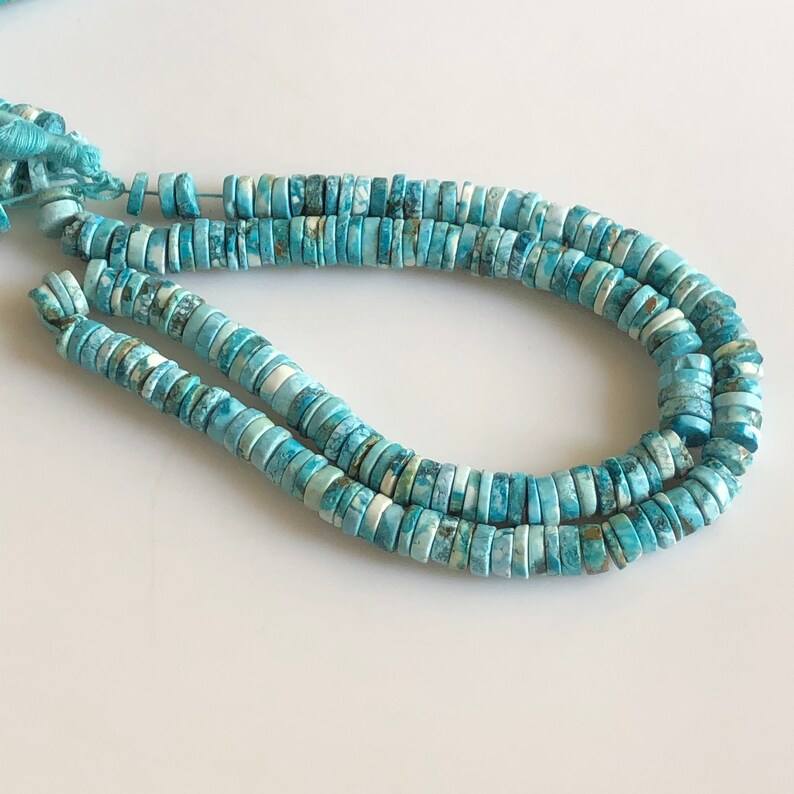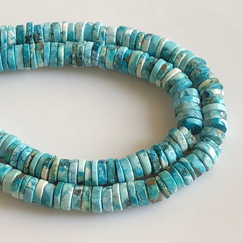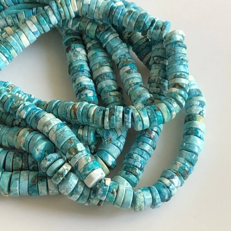 ลูกปัดหินเทอร์ควอยซ์ธรรมชาติทรงเหรียญเรียบ สำหรับทำเครื่องประดับ ร้อยเป็นเส้น