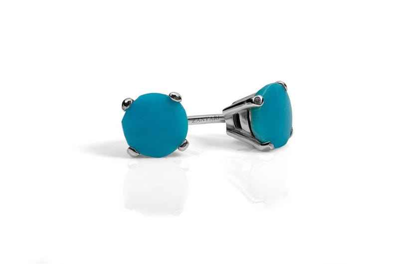 ต่างหูสตั๊ดเทอร์ควอยซ์ธรรมชาติ925เงินสเตอริ่งหินแท้เครื่องประดับทำมือสำหรับผู้หญิงของขวัญที่หรูหราสำหรับเธอ