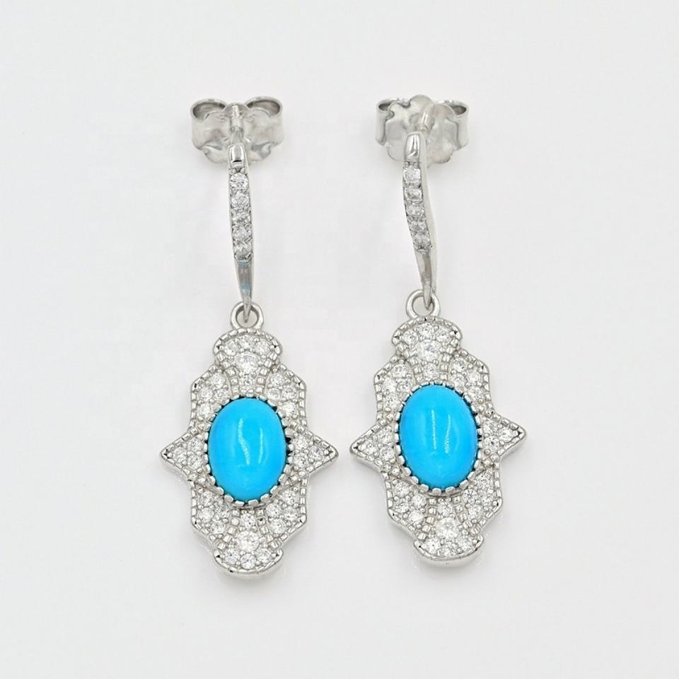 เทอร์ควอยซ์ธรรมชาติ925พลอยอัญมณีทรงหลังเบี้ยทรงรีชุบโรสโกลด์9x7มม. ของขวัญแต่งงานอินเทรนด์