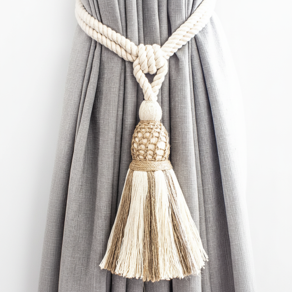 เชือกผูกม่านทอแบบสองสีธรรมชาติ, เชือกผูกม่านสีครีมและสีธรรมชาติ, เชือกผูกม่านสไตล์โบโฮชิค, เชือกผูกม่านสไตล์โบฮีเมียน