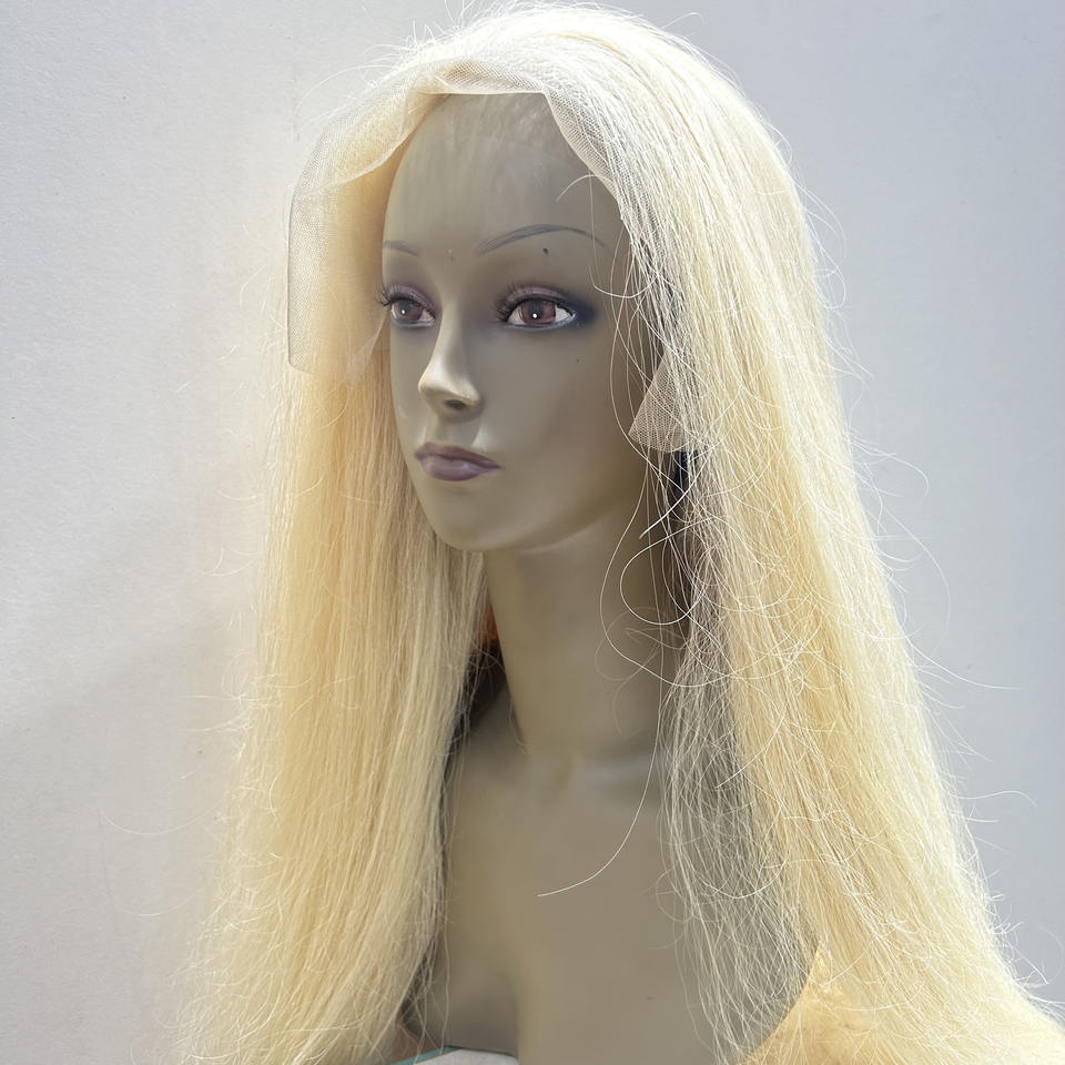ผมเรมี่อินเดียสีบลอนด์ตรง สำหรับทำวิกผม พร้อมฐานลูกไม้แบบใส ความหนาแน่น 180% ไม่ต้องใช้กาว 220 กรัม