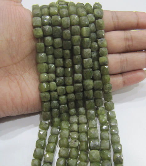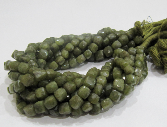 ลูกปัด briolette เหลี่ยมเพชรพลอย3D 6มม. หินกึ่งมีค่าสีเขียว8นิ้วเครื่องประดับที่ไม่ซ้ำกันยาว