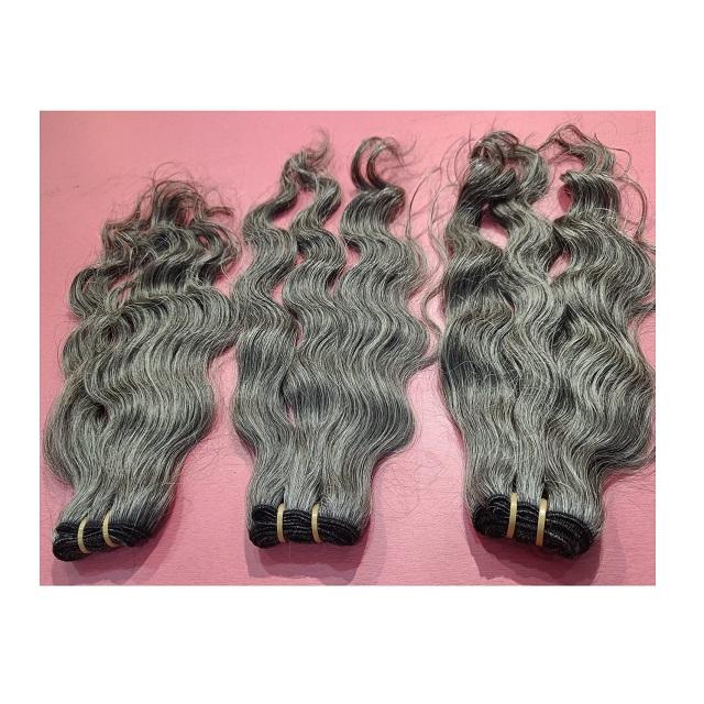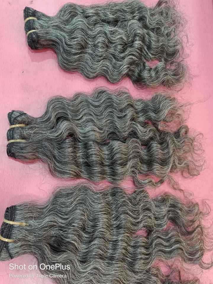 ผมต่อ3มัดแบบอินเดียบริสุทธิ์ธรรมชาติบริสุทธิ์3มัดผมอัจฉริยะแบบคลื่นลึกสไตล์หยักศกหน้าผากแบบไม่ผ่านกระบวนการเป็นสีเทา